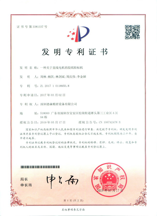自動貼標機-實用新理ZL201921310255.2